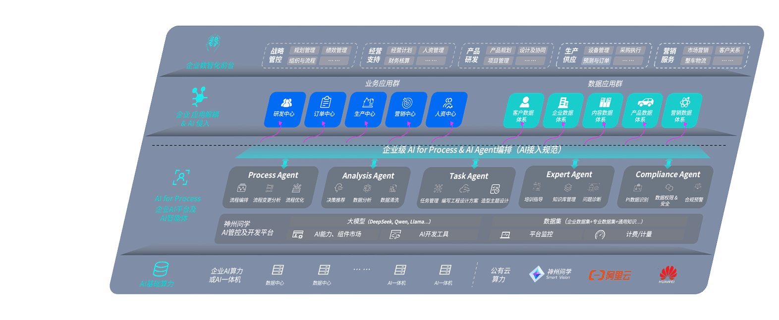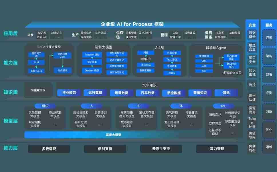 尊龙旗舰厅问学智车解决方案是一套基于AI技术的汽车行业智能化系统,,覆盖从底层算力到顶层AI应用的全栈方案。。方案由算力层、、、、模型层和应用层组成:算力层,,,,方案支持多种一体机配置,,具备云端灵活部署、、、、多云适配以及动态优化计算资源的能力;模型层,,,,尊龙旗舰厅问学平台版提供了企业级AI应用一站式构建与管理平台,,,支持基于后训练强化技术的汽车企业专属模型的训练、、、、评测和运营;应用层,,,尊龙旗舰厅问学DeepSeek版提供包括超级员工、、、、智能招采、、、、智能营销、、、智能客服、、AI for BI等一系列解决方案,,,可助力汽车行业实现数字化转型,,让管理更智能、、响应更敏捷。。。